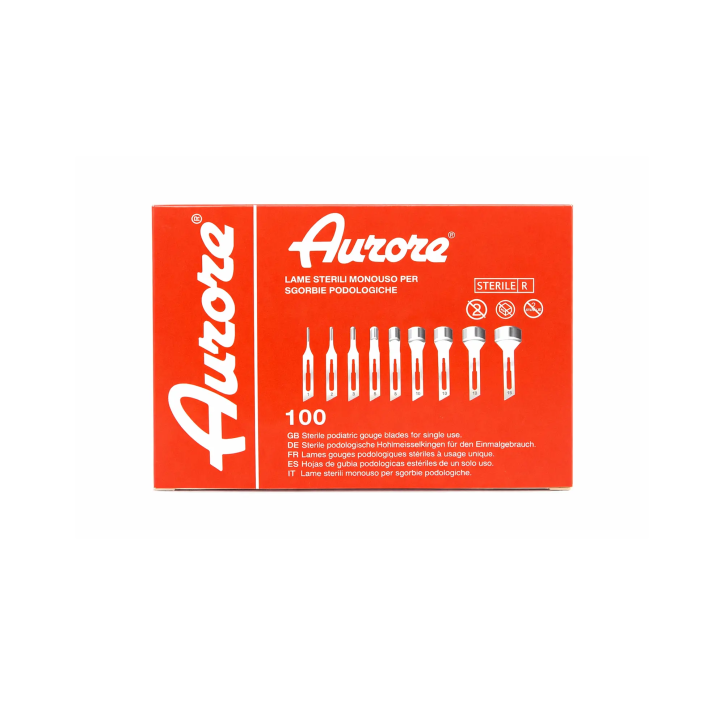 Le lame per sgorbia Aurore taglia 12 sono perfette per trattamenti professionali di estetica e podologia. Realizzate in acciaio al carbonio, garantiscono un taglio preciso e sicuro.
