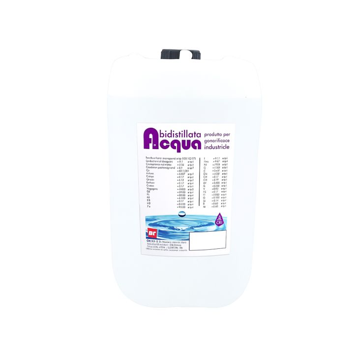 | Metodo d'uso | Versare l’acqua bidistillata nel serbatoio dell’apparecchiatura secondo le indicazioni del produttore. Conservare la tanica ben chiusa, lontano da fonti di calore e luce diretta. |