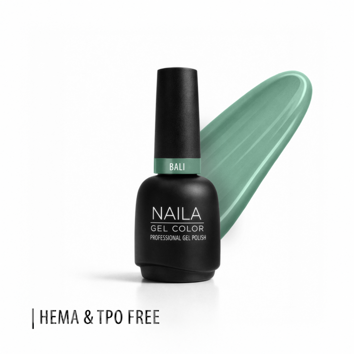 Naila – Gel Color Bali 91 è un verde salvia profondo e rilassante, ispirato alle sfumature naturali delle foreste tropicali. La sua tonalità equilibrata tra verde e cenere dona eleganza e armonia alla manicure, risultando perfetta sia come colore pieno che come base per nail art botaniche e minimal chic. La formula ultra pigmentata garantisce un risultato uniforme e coprente già dalla prima passata, mentre la texture autolivellante facilita una stesura precisa anche nelle zone di dettaglio. Bali 91 è la scelta ideale per chi ama colori naturali ma ricercati, con un tocco raffinato.
