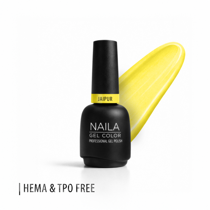 Naila – Gel Color Jaipur 95 è un giallo luminoso e intenso, una tonalità calda e radiosa che richiama le atmosfere vibranti dell’India. La sua nuance brillante, arricchita da sottotoni dorati, dona immediata vitalità alla manicure, rendendola perfetta per look solari, estivi e ricchi di personalità. Grazie alla sua formula ultra pigmentata, Jaipur 95 garantisce una coprenza uniforme già dalla prima passata, mentre la texture fluida e autolivellante permette una stesura precisa e priva di striature, anche essendo un colore chiaro. Ideale per manicure a colore pieno, french alternative, nail art geometriche e accenti decorativi luminosi.