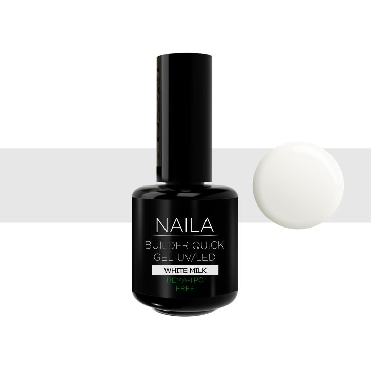 Naila Gel Quick White Milk è un gel costruttore trifasico bianco latte, ideale per strutture dal look sofisticato e luminoso.