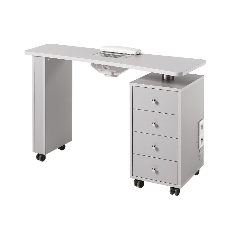 Tavolo manicure con aspiratore integrato e cassettiera.