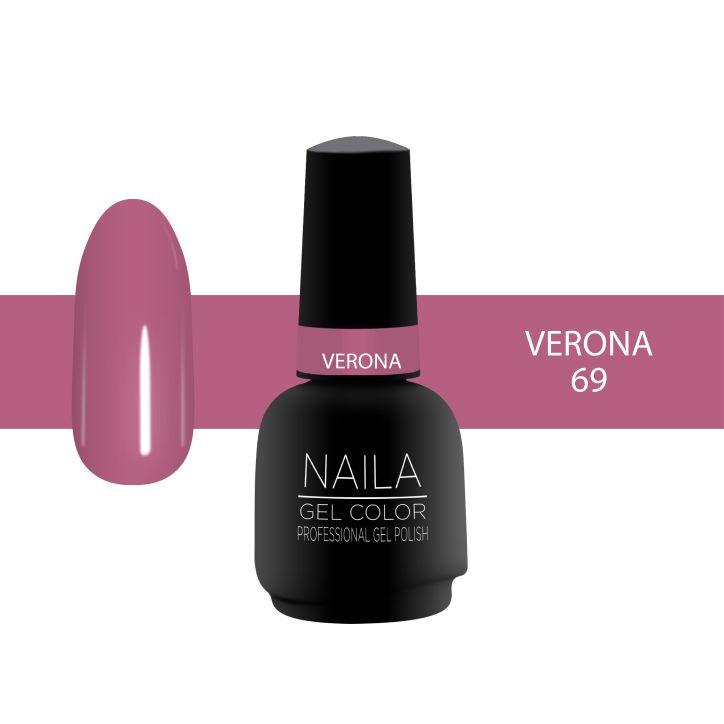 Naila – Gel Color Verona 69 è un rosa malva violaceo caldo, luminoso e delicato. La sua nuance, elegante e romantica, si adatta perfettamente a manicure soft, nail art floreali e look femminili. Grazie alla texture autolivellante, Verona 69 garantisce una stesura uniforme e priva di striature.
